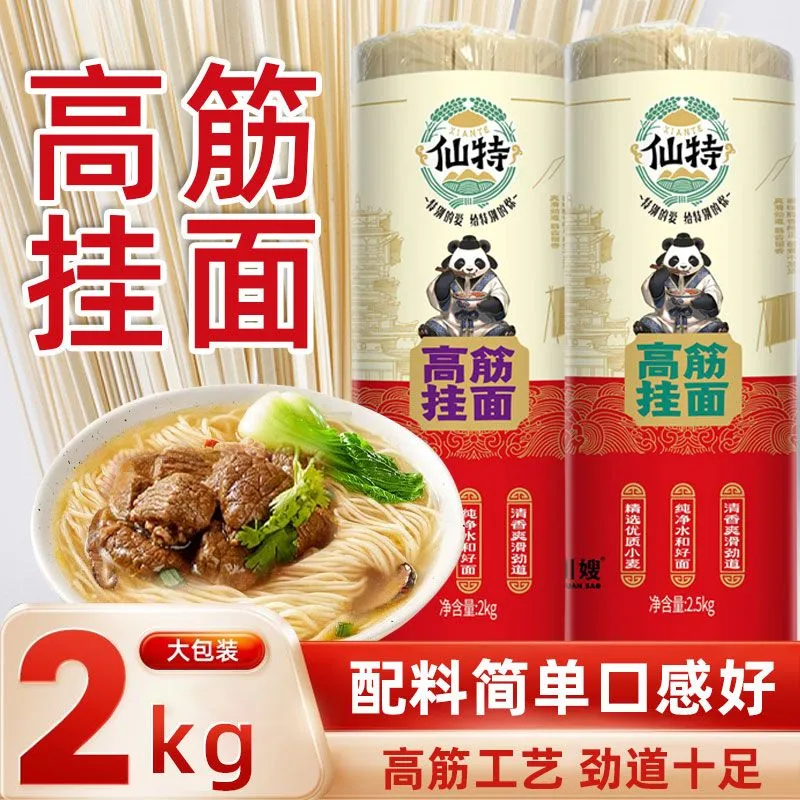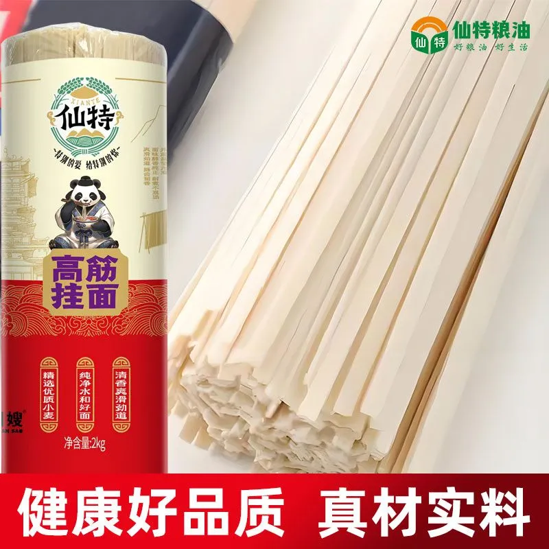 仙特高筋掛面,選用自磨優質高筋小麥粉精制而成,面條筋道爽滑,久煮不爛,口感細膩有彈性。制作工藝講究,面條色澤自然,麥香濃郁,營養豐富。高筋掛面是家庭餐桌的優質主食選擇,既能滿足味蕾,又能提供充足能量。