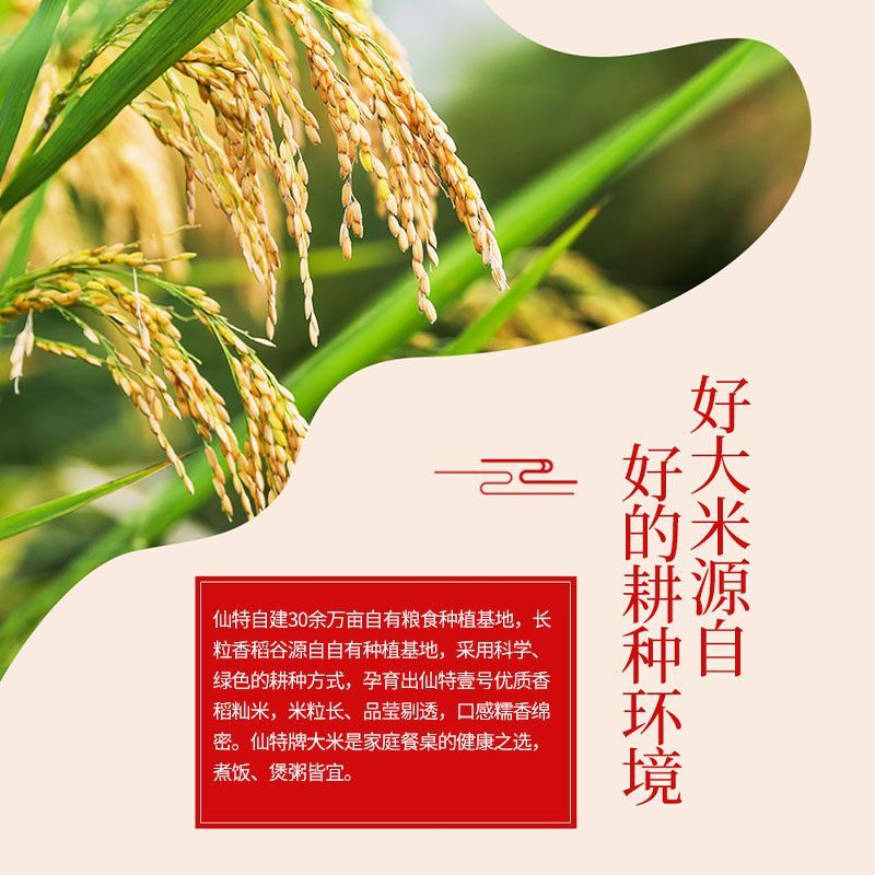 仙特壹號,稻谷源自仙特自有基地,采用科學、綠色的耕種方式,孕育出仙特壹號優質香稻秈米,米粒長、晶瑩剔透,口感糯香綿密。是家庭餐桌的健康之選,煮飯、煲粥皆宜。