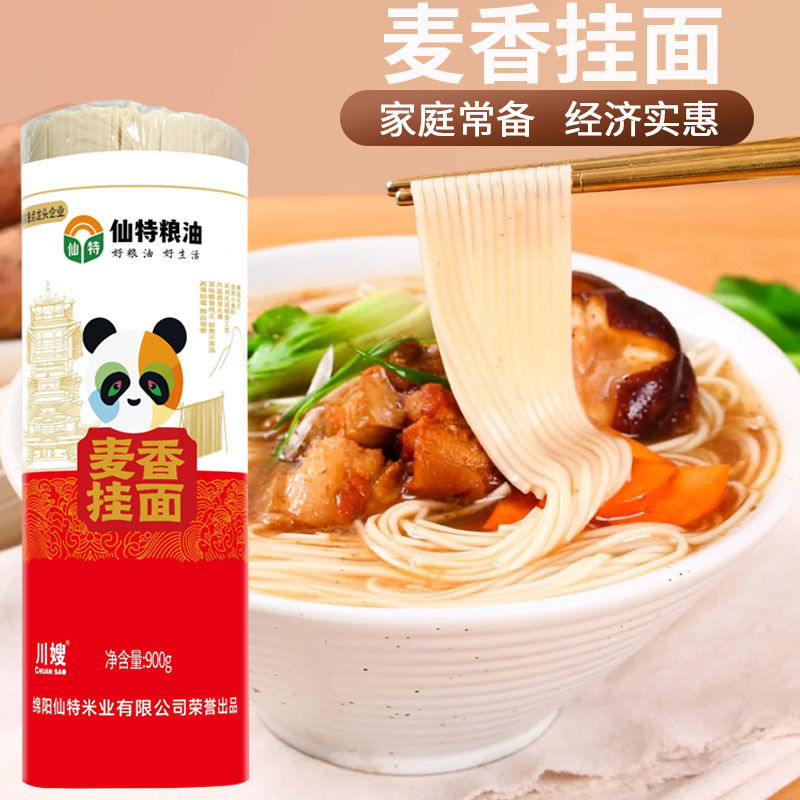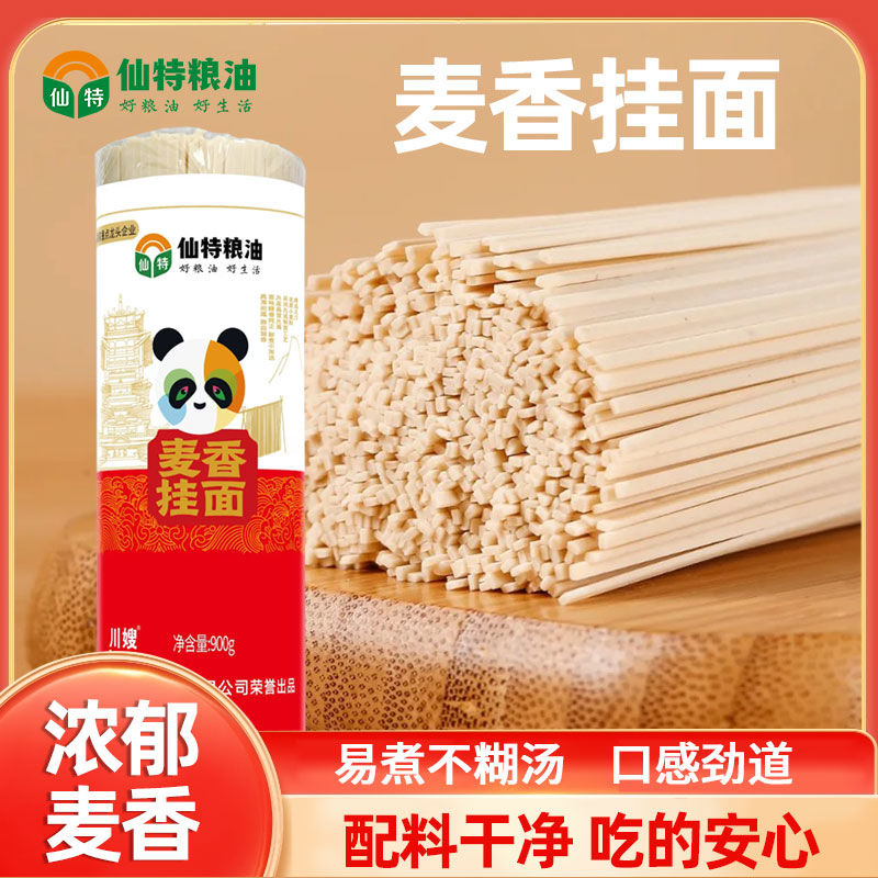 仙特掛面,選用自磨優質高筋小麥粉精制而成,面條筋道爽滑,久煮不爛,口感細膩有彈性。制作工藝講究,面條色澤自然,麥香濃郁,營養豐富。