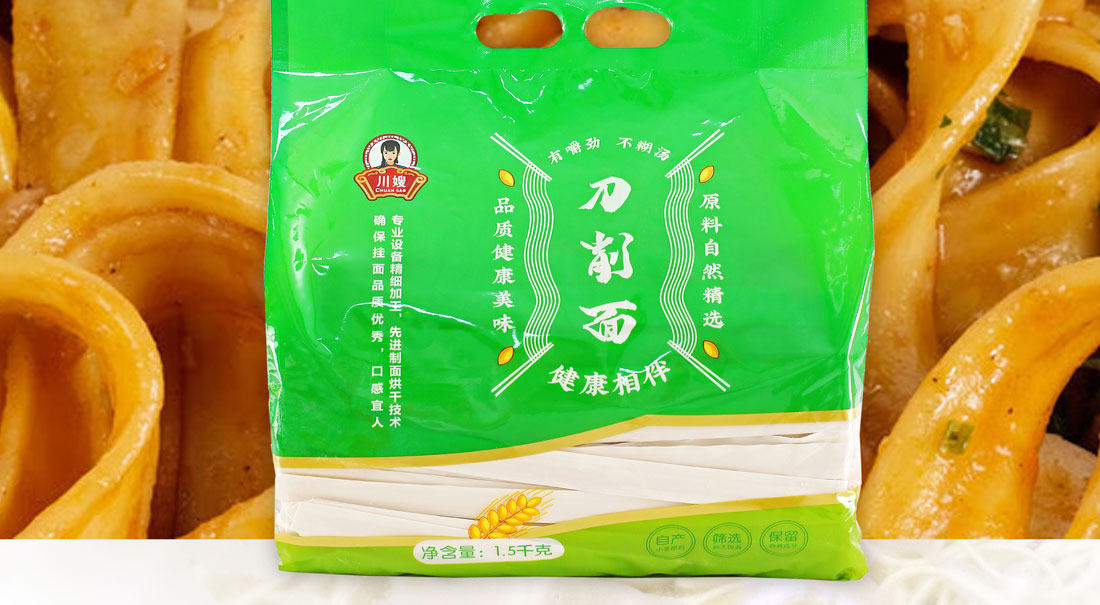 川嫂刀削面,選用自磨優(yōu)質(zhì)高筋小麥粉精制而成,面條筋道爽滑,久煮不爛,口感細(xì)膩有彈性。制作工藝講究,面條色澤自然,麥香濃郁,營養(yǎng)豐富。高筋掛面是家庭餐桌的優(yōu)質(zhì)主食選擇,既能滿足味蕾,又能提供充足能量。